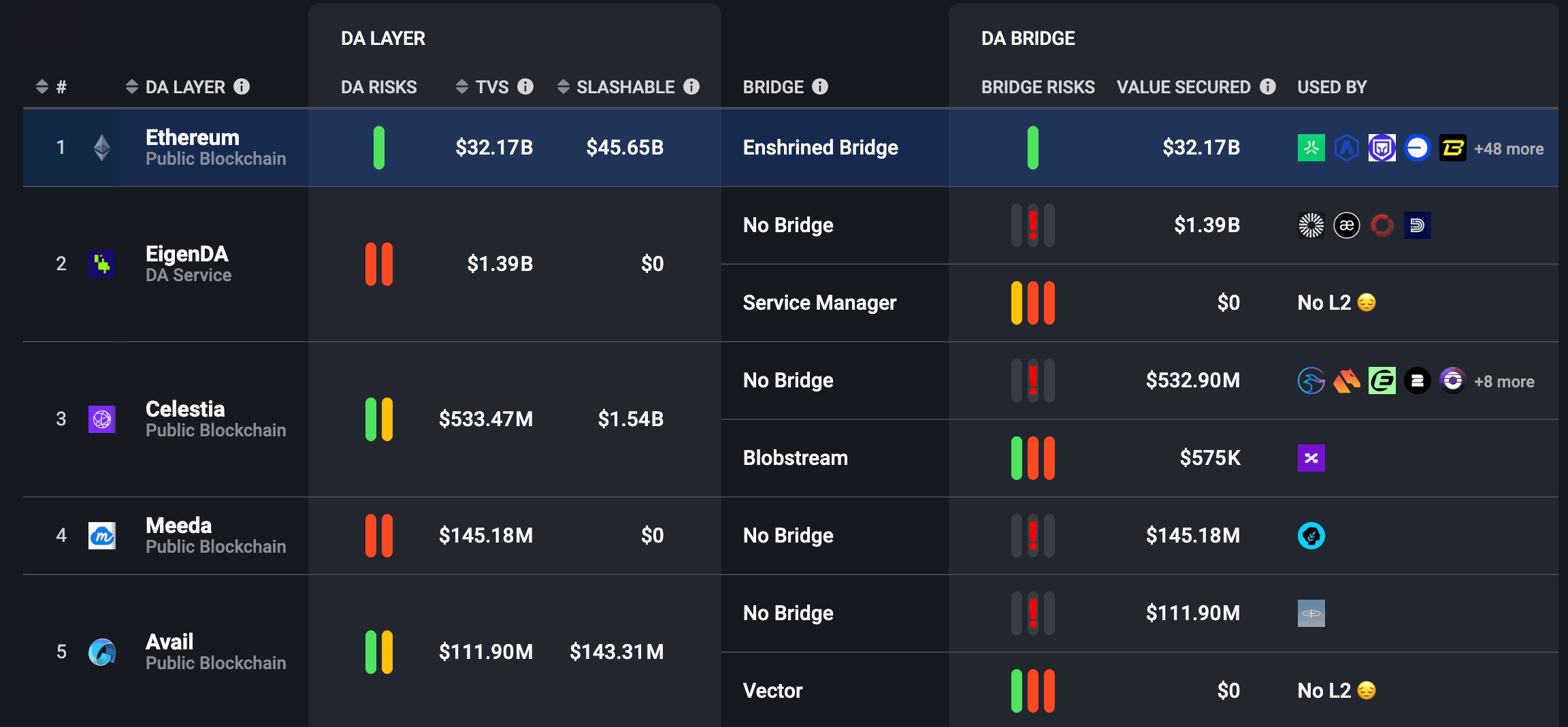 EigenDA has pulled away in the lead with the most recent integration of Mantle, now securing over $1.39b in assets.