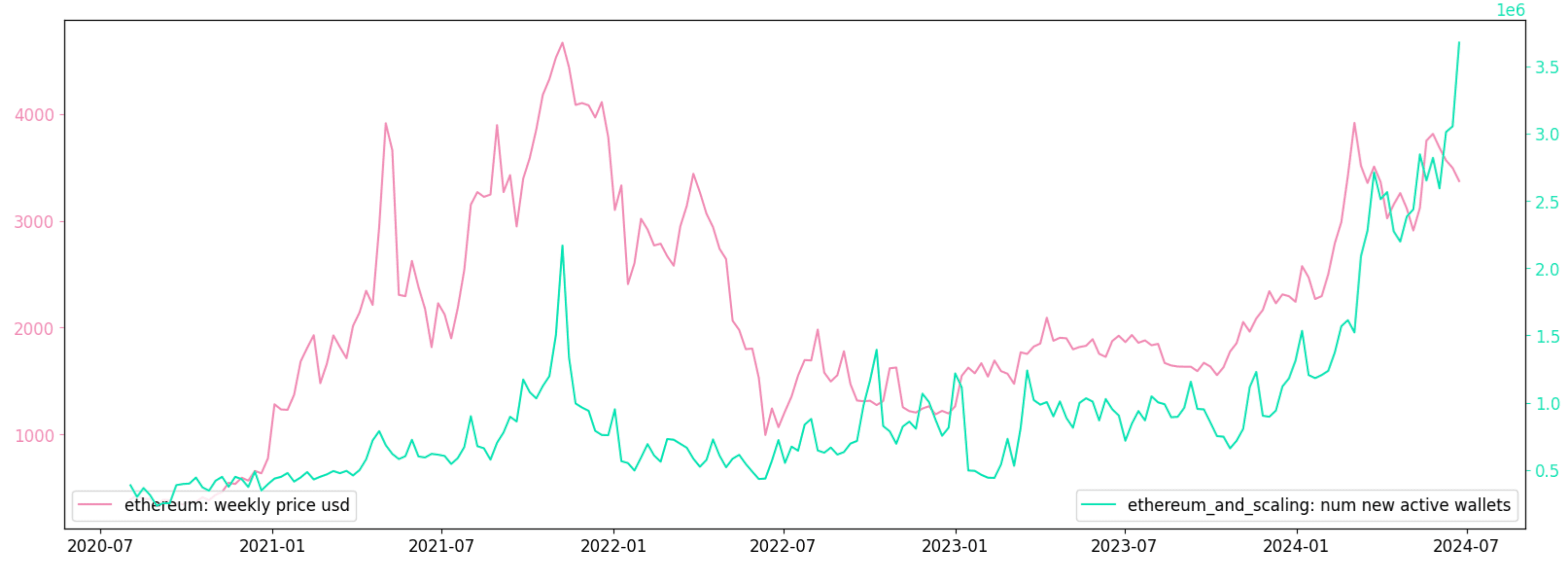 Chart 1: New Unique Wallets on Ethereum + L2 Ecosystem vs ETH Price