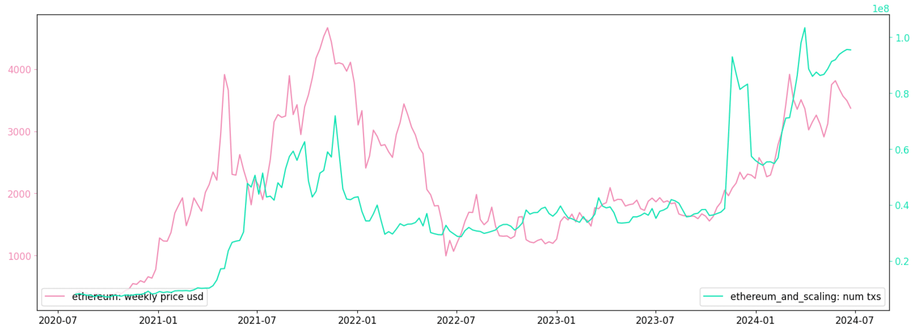 Chart 2: Number of Transactions on Ethereum + L2 Ecosystem vs ETH Price
