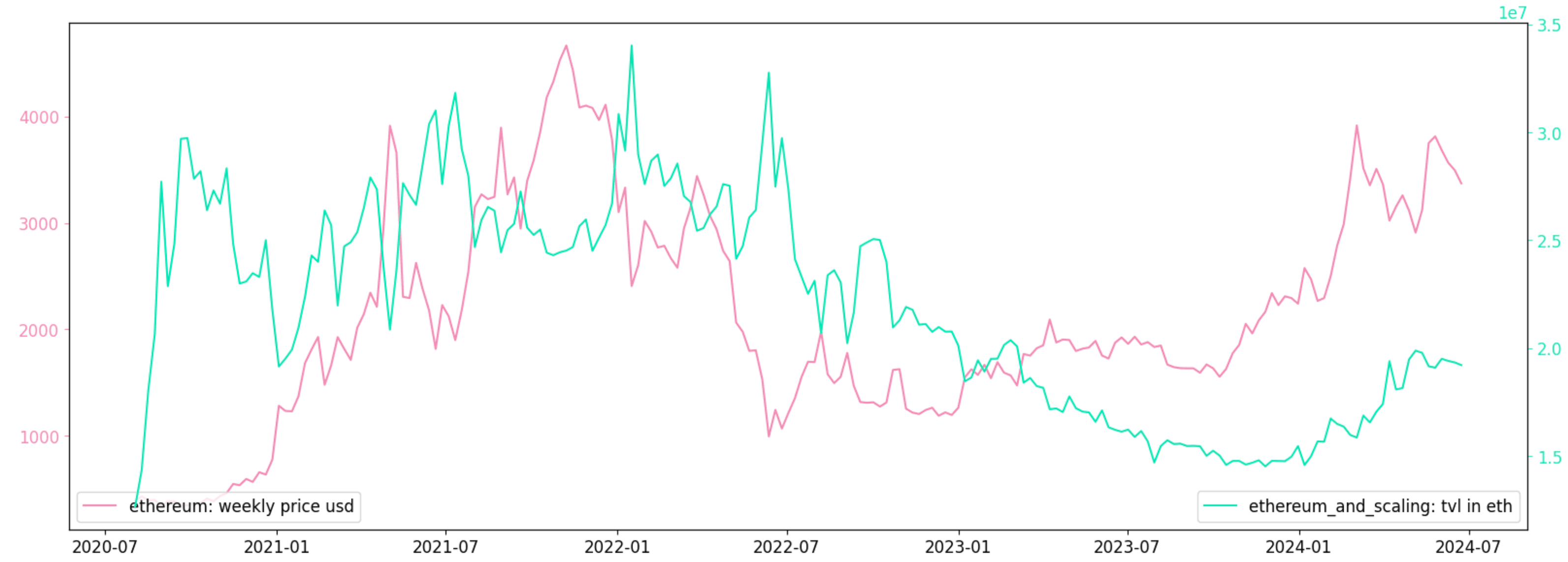 Chart 4: TVL (in ETH) on Ethereum + L2 Ecosystem vs ETH Price