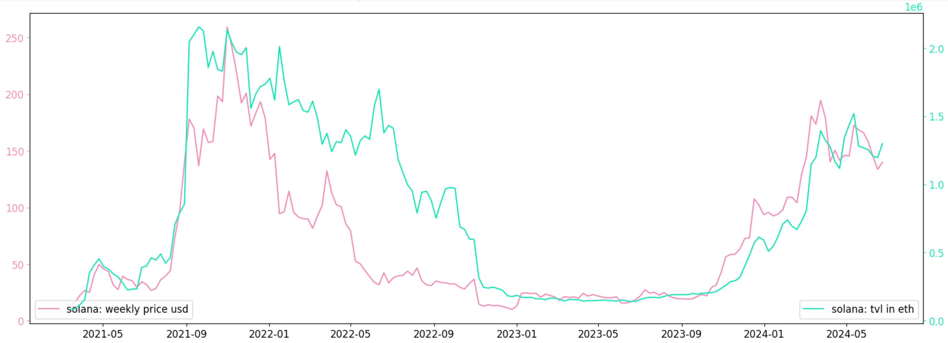 Chart 6: TVL (in ETH) on Solana vs SOL Price
