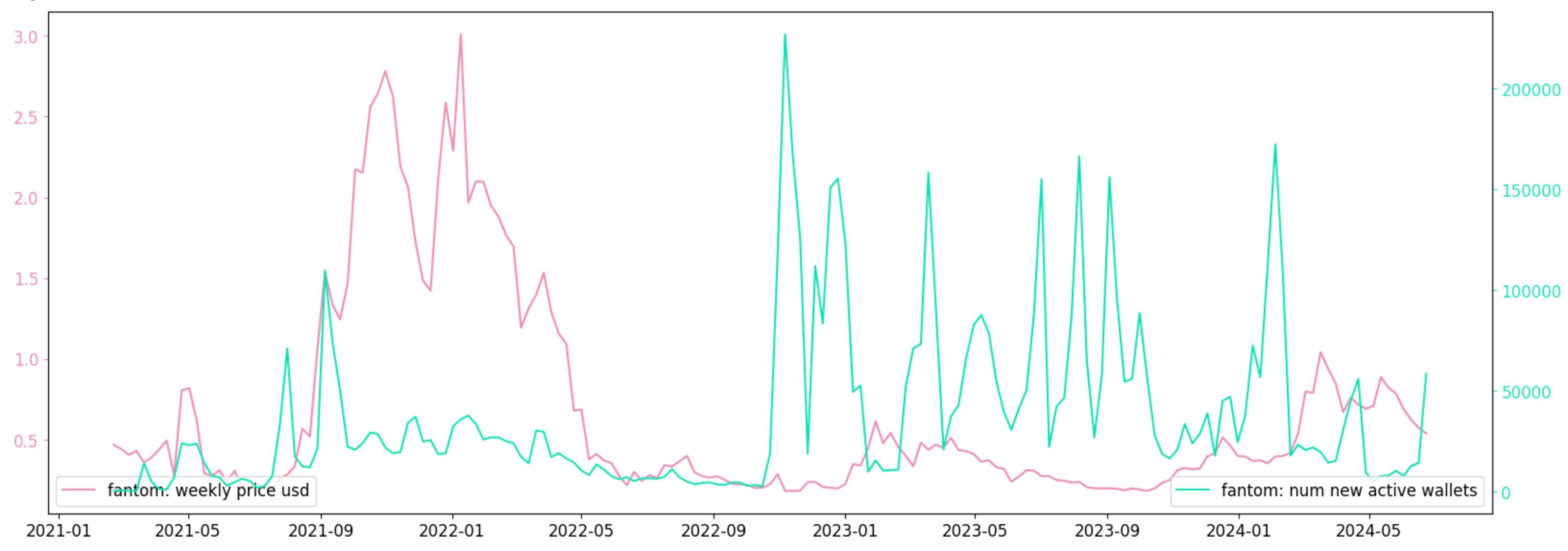 Chart 7: New Unique Wallets on Fantom vs FTM Price
