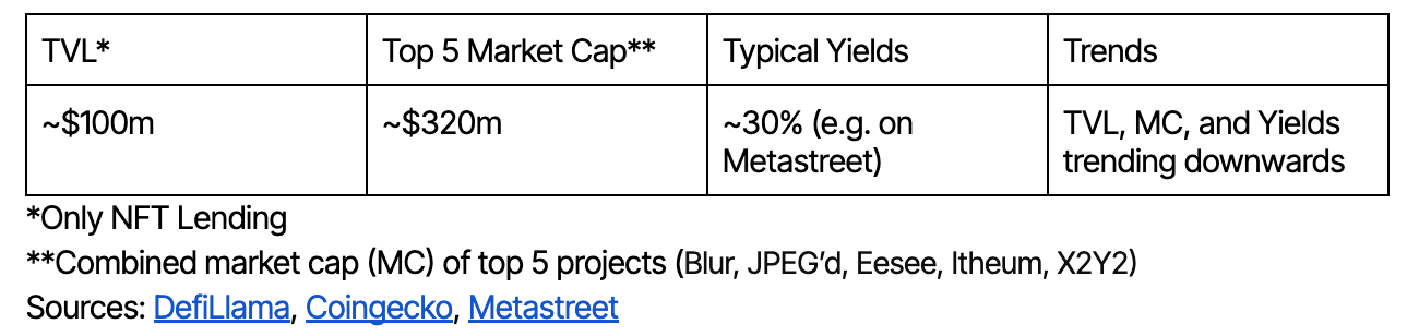 This allowed NFTfi to continue generating competitive yields for some collections, even though the broader NFT market was off its peak. However, since these collections are so few, the growth potential for this market remains extremely limited. Additionally, airdrops are unpredictable in terms of frequency, value, and sustainability, placing the entire vertical in a high-risk niche.