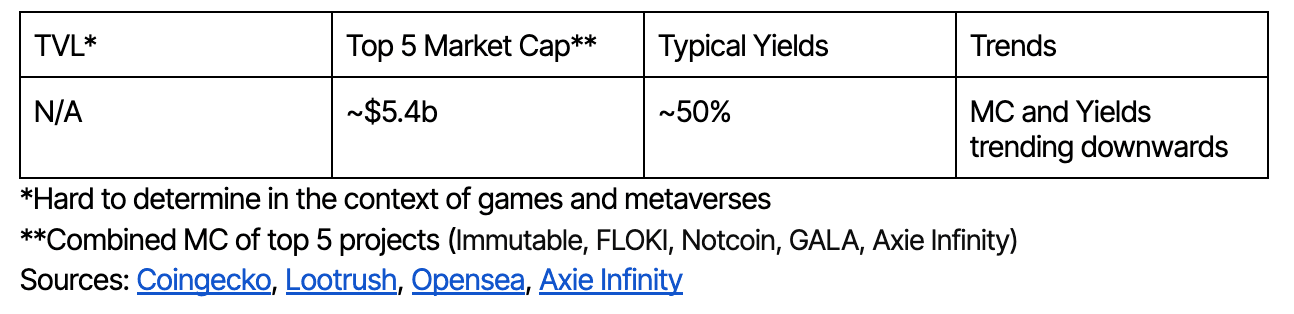 Similar to the NFT market, the gaming and metaverse markets have seen better days. This is not to say that there aren’t exciting developments, but valuations and asset prices have generally been trending downward.