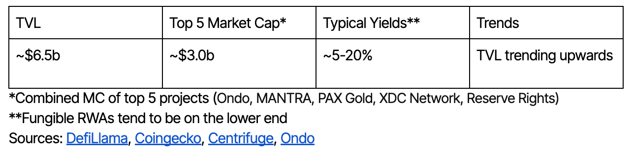 Fungible and crypto-adjacent RWAs, such as tokenized treasuries (e.g., Ondo, BUIDL, Maple) or other traditional finance products (e.g., Ethena tokenizing funding rates), are already conceptually close to what’s happening in DeFi, making them relatively straightforward to implement, though regulatory hurdles may still exist.