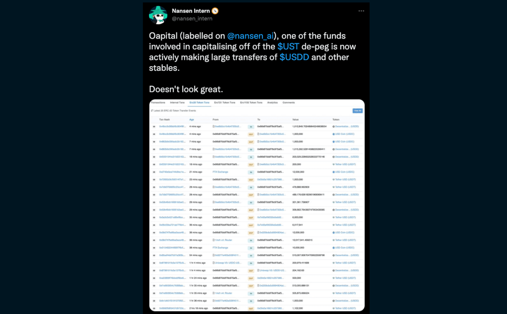 Just as what we’ve seen during the UST demise, having a proper risk management system is equally important in protecting capital. This is where Nansen smart alerts come in. For example, you could create smart alerts that track huge token outflows / inflows in Curve stablecoin pools, to keep track of pool imbalance that could affect the stablecoin’s peg.