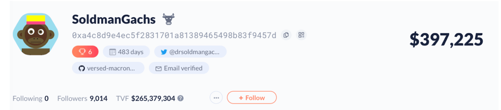 - Profile integrity (only counts for DeBank-supported NFT & DeFi protocols)