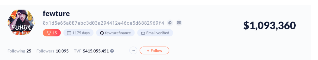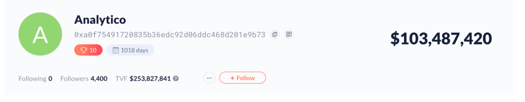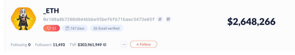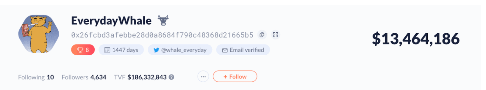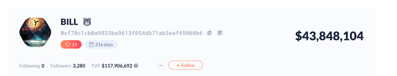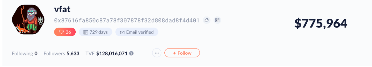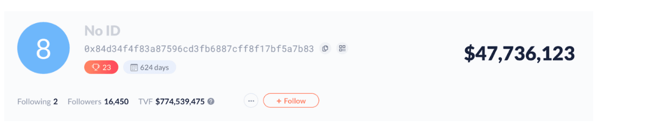 Wallet Size: $47.7mm Debank Followers: 16.4k Smart Money on Nansen? Yes