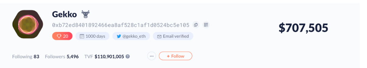 Wallet Size: $17.3mm Debank Followers: 21k Smart Money on Nansen? Yes